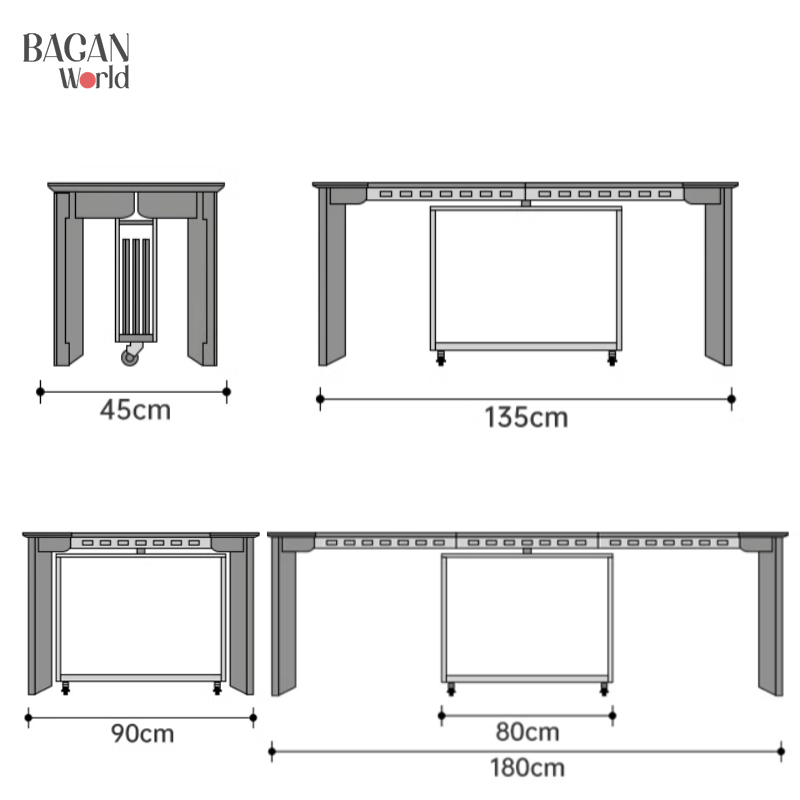 | 5 | Bàn ăn gấp mở rộng 45-180, rộng 80cm | Bagan MRA2-80 | Chân sắt ,gỗ CN, mặt đá | 80cm | 45cm-180cm |