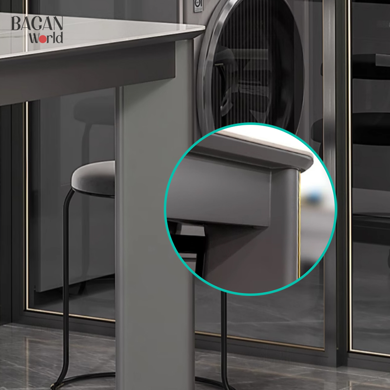 - Chất liệu: Chân sắt mạ tĩnh điện, phần tủ hộp gỗ CN- mặt bàn đá bóng.